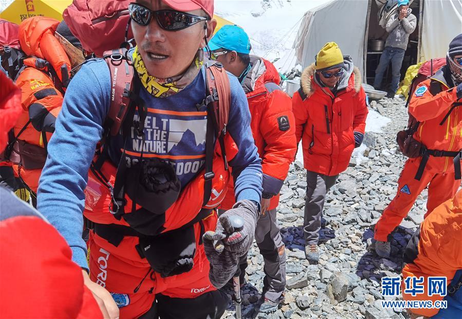 5月24日,2020珠峰高程測(cè)量登山隊(duì)部分人員從海拔6500米的前進(jìn)營地出發(fā)。新華社特約記者拉巴攝
