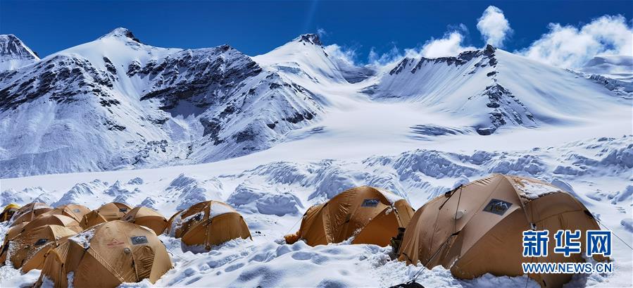 被大雪覆蓋的海拔6500米的珠峰前進(jìn)營地(5月22日攝,手機(jī)照片)。新華社記者晉美多吉攝
