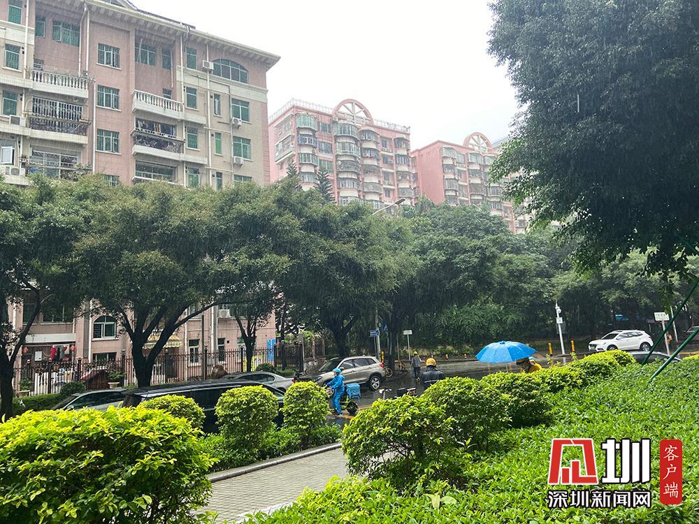 25日上午11時(shí)許,伴隨著雷聲,深圳市福田區(qū)開始下雨。