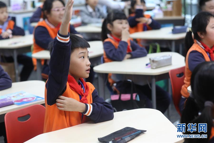 5月25日,貴陽(yáng)市中天北京小學(xué)未來(lái)方舟校區(qū)一名學(xué)生在開(kāi)學(xué)第一課上舉手發(fā)言。新華社記者歐東衢攝
