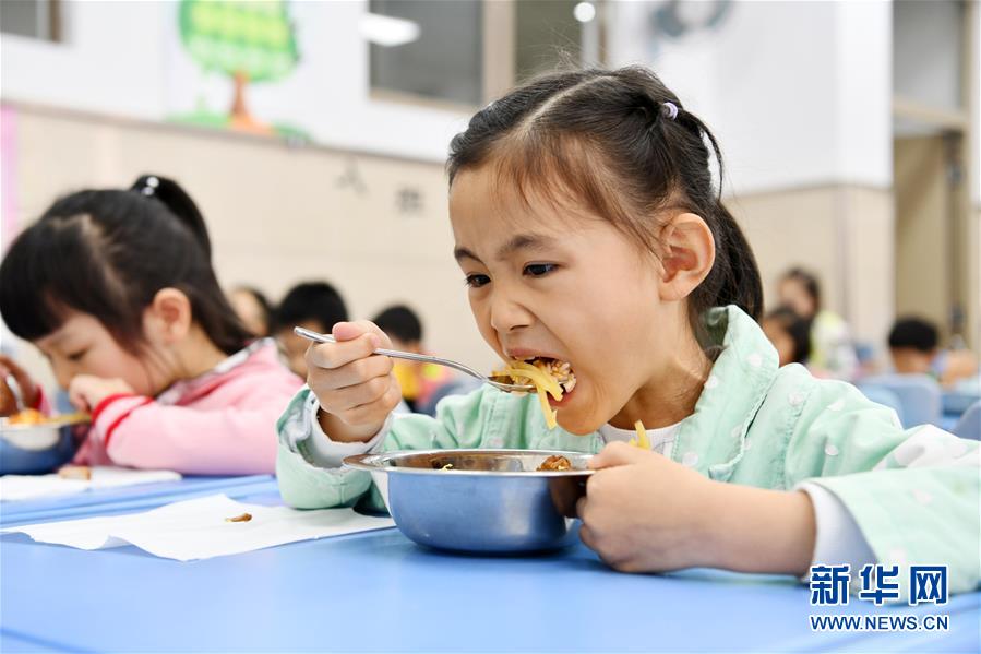 5月25日,貴陽(yáng)市南明區(qū)苗苗實(shí)驗(yàn)學(xué)校的學(xué)生吃午餐。新華社記者楊文斌攝