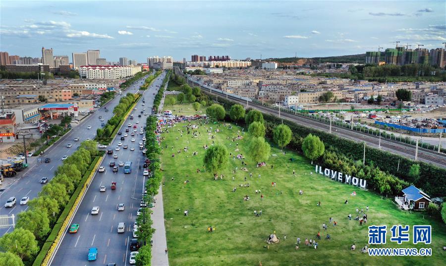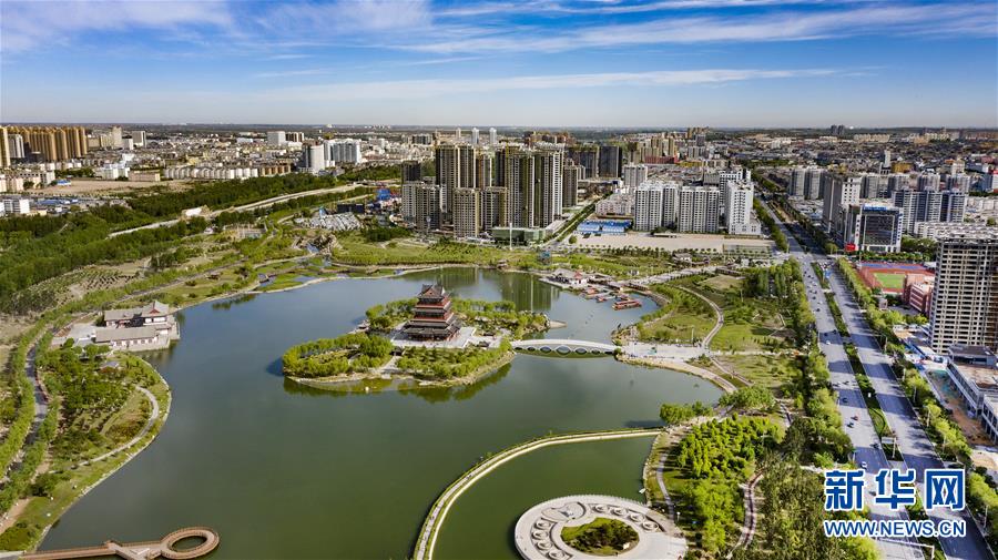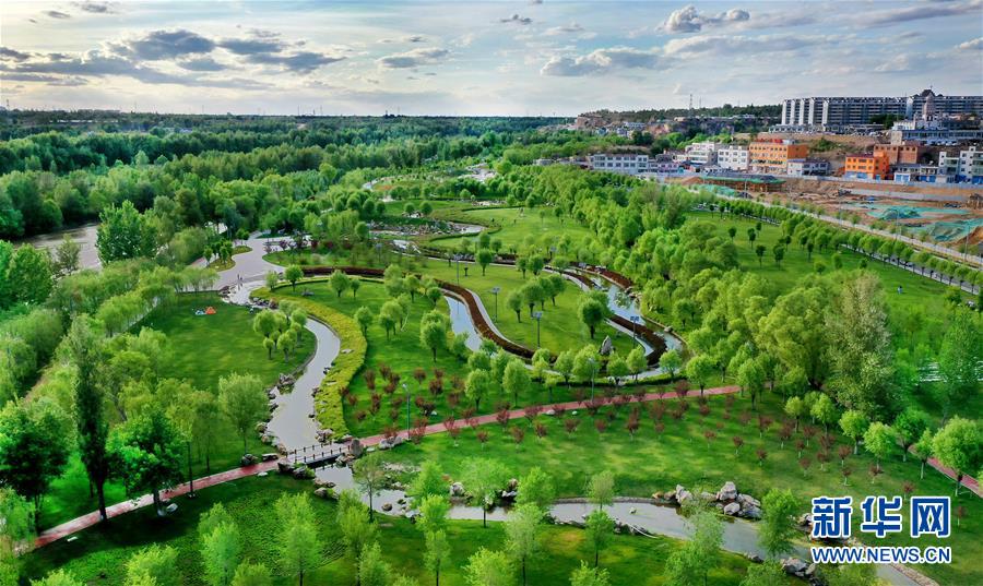 5月24日拍攝的榆林市河濱公園(無人機(jī)照片)。新華社記者陶明攝