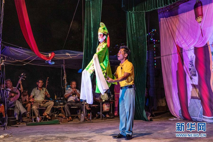 5月24日,海南臨高新風(fēng)人偶戲團在臨高縣美朗村演出。