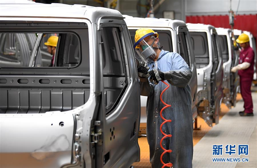 5月26日,工人在江淮汽車新港基地輕卡生產(chǎn)區(qū)內(nèi)忙碌。新華社記者劉軍喜攝