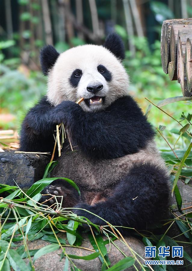 5月27日,大熊貓婷仔在享受竹子大餐。正在享受竹子大餐的廣州長(zhǎng)隆野生動(dòng)物世界大熊貓婷仔被大熊貓隆仔搶食,兩只大熊貓上演一場(chǎng)爭(zhēng)食戲碼。新華社記者劉大偉攝