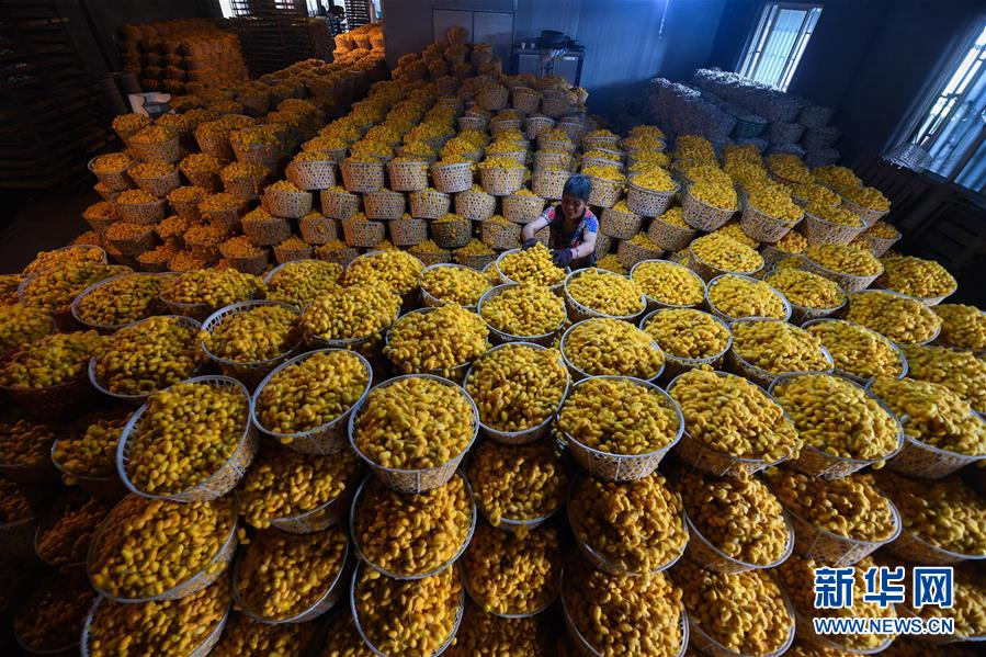 5月27日,桐鄉(xiāng)市鳳鳴街道建勝村70歲的村民宋柏明在收獲“黃金繭”。他今年在桐鄉(xiāng)興民蠶業(yè)專業(yè)合作社的指導(dǎo)下首次養(yǎng)3張黃金蠶繭種,收獲“黃金繭”近400斤,比往年同期增收1500元。近期,蠶桑之鄉(xiāng)浙江省桐鄉(xiāng)市的蠶農(nóng)們迎來了蠶繭豐收的季節(jié),其中新品種“黃金繭”的增收效果尤其明顯。據(jù)介紹,與普通蠶絲相比,色澤金黃的黃金蠶絲中葉黃素含量高,抗菌效果更好,深受市場青睞。2020年春季,浙江省桐鄉(xiāng)市共計發(fā)放黃金蠶繭種1225張,產(chǎn)量預(yù)計75噸,總產(chǎn)值近300萬元,較普通蠶繭增收約20%,成為當(dāng)?shù)剞r(nóng)業(yè)增收的亮點。浙江省桐鄉(xiāng)市是我國蠶桑的重要產(chǎn)地,“桐鄉(xiāng)蠶桑習(xí)俗”也被國務(wù)院列入第二批國家級非物質(zhì)文化遺產(chǎn)名錄。新華社記者徐昱攝