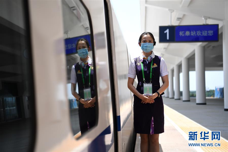5月27日,試運行檢查確認(rèn)列車乘務(wù)人員在商合杭高鐵柘皋站。新華社記者劉軍喜攝