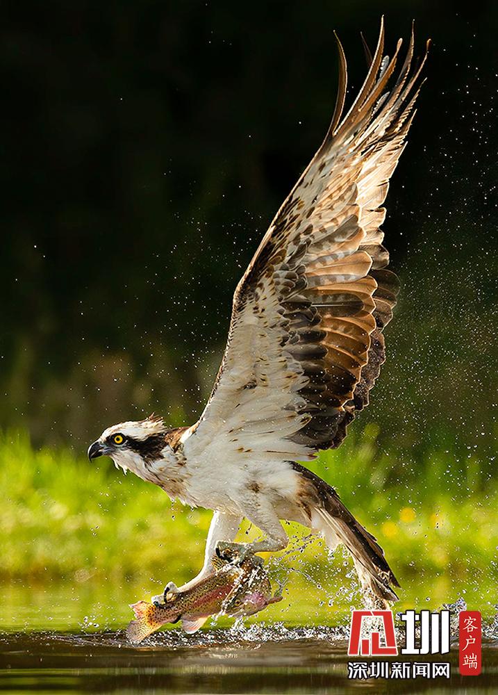 2020年5月28日?qǐng)?bào)道(具體拍攝時(shí)間不詳),54歲的Gladys Klip來(lái)自荷蘭,是一名銀行助理,他在蘇格蘭高地拍攝到魚(yú)鷹捕魚(yú)的精彩照片。畫(huà)面中,魚(yú)鷹快速俯沖而下,掠過(guò)水面,鷹爪隨即從水中成功抓起一條魚(yú)兒,濺起水花,整個(gè)過(guò)程精彩詮釋快準(zhǔn)狠。Gladys Klip稱他在早晨5點(diǎn)的時(shí)候已經(jīng)在等候拍攝。