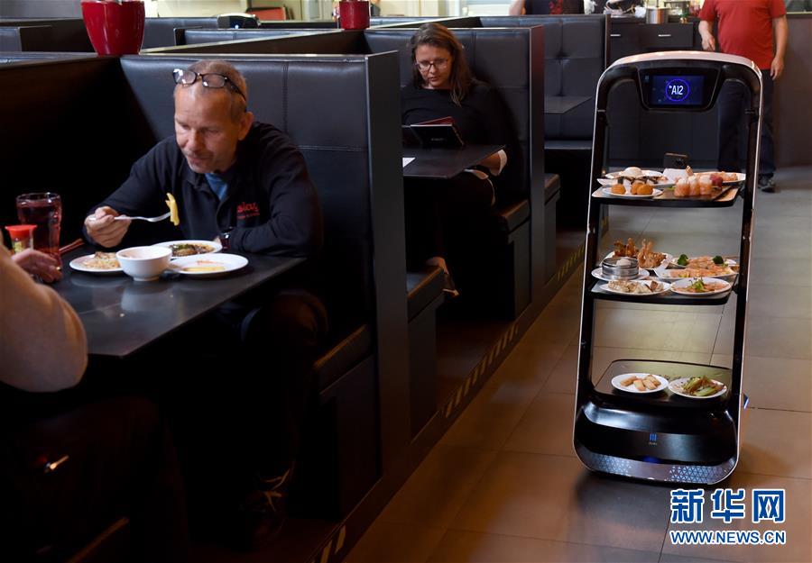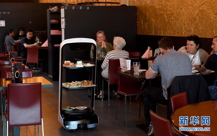 5月28日,在奧地利維也納一家亞洲餐廳內,機器人給顧客上菜。維也納的一家亞洲餐廳于疫情期間重新營業(yè)后,更多利用機器人上菜,以減少服務員和顧客之間的非必要接觸。新華社記者郭晨攝