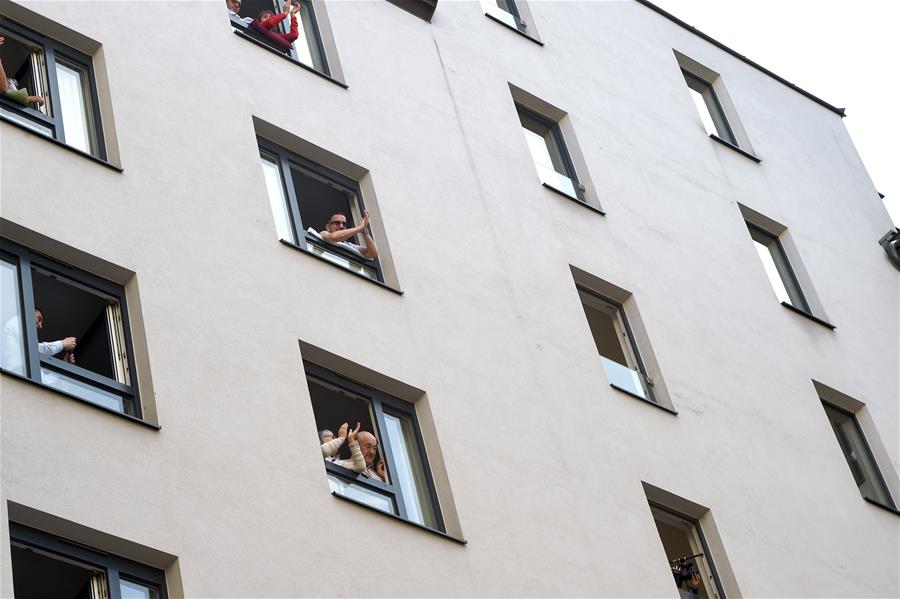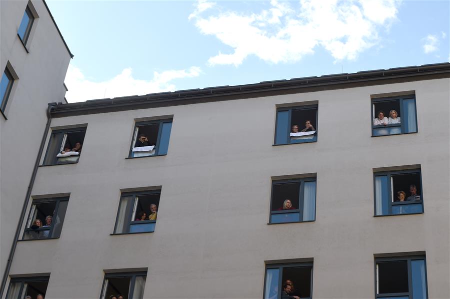 5月30日,在奧地利維也納“時代精神”酒店內(nèi),人們在房間窗口欣賞歌劇演出。當(dāng)日,奧地利首都維也納的一家名為“時代精神”的酒店為迎接“解封”后恢復(fù)營業(yè),在其庭院內(nèi)舉辦“窗口音樂會”。按照奧政府此前公布的“解封”時間表,從29日起,賓館酒店以及健身房、游泳池和游樂場等休閑娛樂場所有條件恢復(fù)運營。新華社記者郭晨攝
