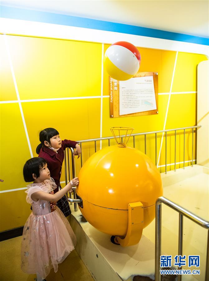 6月1日,小朋友在貴州科技館內(nèi)體驗氣流投籃。新華社記者陶亮攝。