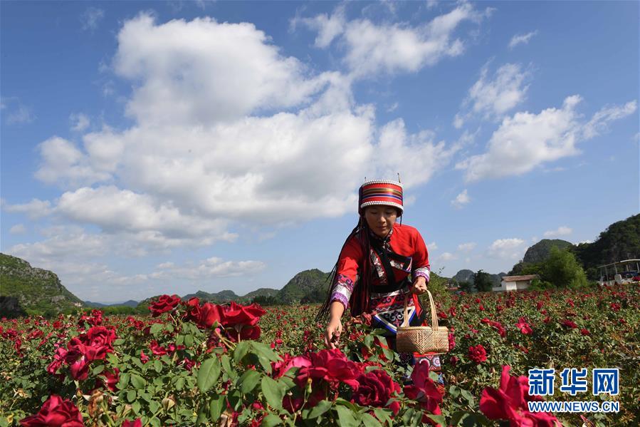 6月2日,云南丘北縣八道哨鄉(xiāng)阿諾村的少數(shù)民族婦女在種植基地采摘食用玫瑰花。云南省文山壯族苗族自治州丘北諾香花卉農業(yè)科技開發(fā)有限公司自2016年以來發(fā)展食用玫瑰花種植1200畝,集生產加工、銷售玫瑰花系列產品及旅游觀光于一體,帶動當?shù)?00多戶群眾脫貧增收。新華社記者楊宗友攝