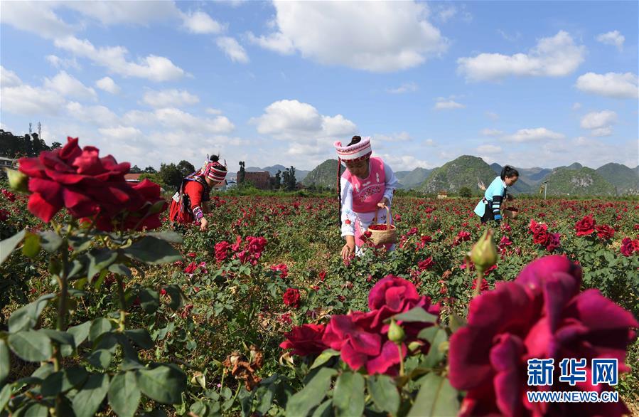 6月2日,云南丘北縣八道哨鄉(xiāng)阿諾村的少數(shù)民族婦女在種植基地采摘食用玫瑰花。云南省文山壯族苗族自治州丘北諾香花卉農(nóng)業(yè)科技開發(fā)有限公司自2016年以來發(fā)展食用玫瑰花種植1200畝,集生產(chǎn)加工、銷售玫瑰花系列產(chǎn)品及旅游觀光于一體,帶動當(dāng)?shù)?00多戶群眾脫貧增收。新華社記者楊宗友攝