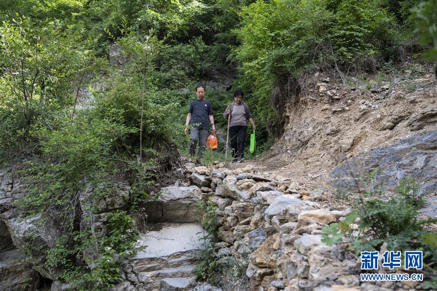 馬武寨寄宿制小學校長趙金成(左)和語文老師崔連瑞前往南背村三姐弟的家(5月31日攝)。新華社記者楊晨光攝。