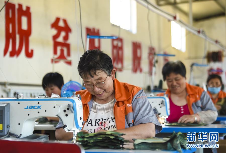 6月3日,村民在深州市高古莊鎮(zhèn)鳳凰池村扶貧車間做縫紉工作。今年以來(lái),河北省深州市圍繞決勝全面小康、決戰(zhàn)脫貧攻堅(jiān)任務(wù)目標(biāo),在推進(jìn)產(chǎn)業(yè)扶貧的過(guò)程中注重激發(fā)內(nèi)生動(dòng)力,通過(guò)電商扶貧、扶貧車間、特色種植養(yǎng)殖等多種形式,提升自我“造血”功能,提高貧困群眾受益度。新華社記者李曉果攝。
