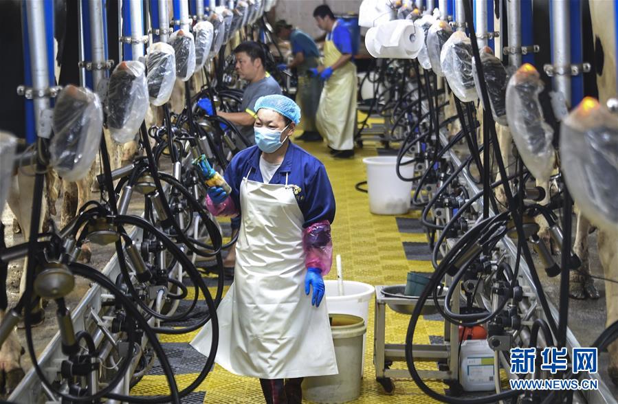 6月3日,村民在深州市榆科鎮(zhèn)郝家莊村奶牛養(yǎng)殖扶貧基地查看擠奶設(shè)備運(yùn)行情況。今年以來(lái),河北省深州市圍繞決勝全面小康、決戰(zhàn)脫貧攻堅(jiān)任務(wù)目標(biāo),在推進(jìn)產(chǎn)業(yè)扶貧的過(guò)程中注重激發(fā)內(nèi)生動(dòng)力,通過(guò)電商扶貧、扶貧車間、特色種植養(yǎng)殖等多種形式,提升自我“造血”功能,提高貧困群眾受益度。新華社記者李曉果攝。