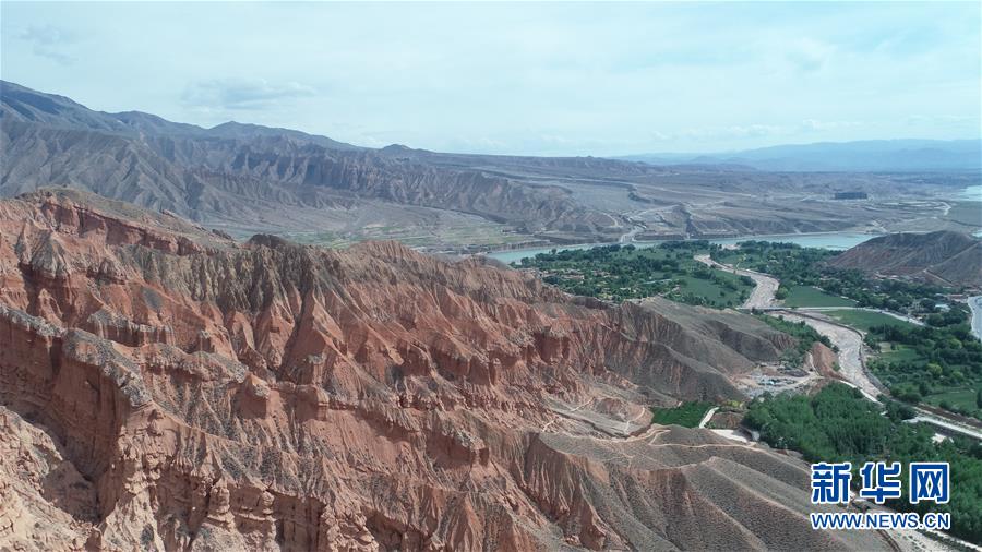 這是6月5日拍攝的位于青海省海南藏族自治州貴德縣境內(nèi)的丹霞地貌(無(wú)人機(jī)照片)。在青海省海南藏族自治州貴德縣境內(nèi),色彩斑斕的丹霞地貌美如畫卷。新華社記者趙玉和攝。