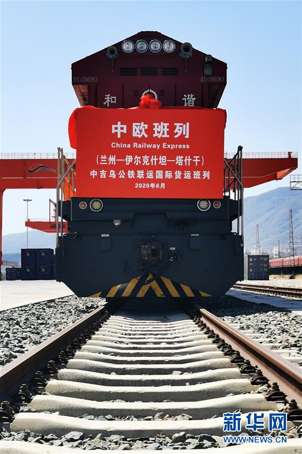這是6月5日在甘肅蘭州國際陸港拍攝的準(zhǔn)備發(fā)車的“中吉烏”公鐵聯(lián)運國際貨運班列。新華社記者范培珅攝。