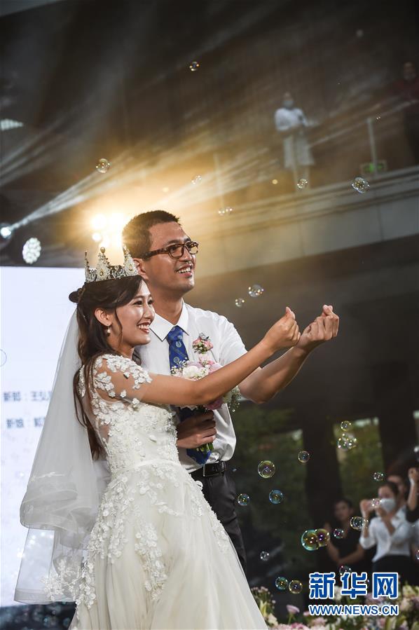 6月6日,新人在海南博鰲樂城國際醫(yī)療旅游先行區(qū)參加集體婚禮。 新華社記者 張麗蕓 攝