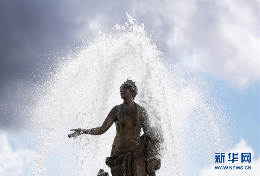這是6月6日在法國巴黎近郊凡爾賽宮花園內(nèi)拍攝的雕塑。  新華社記者 高靜 攝