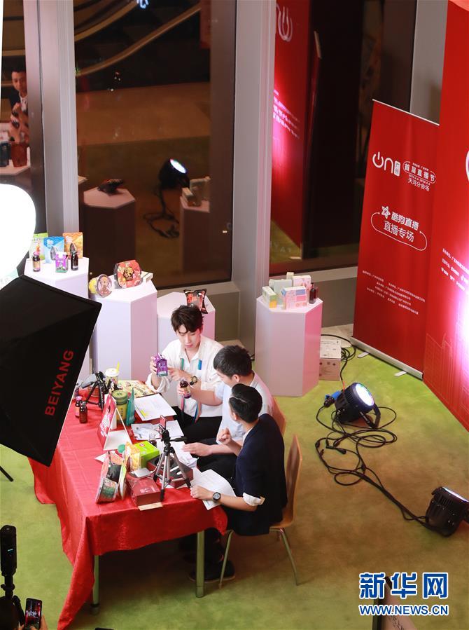 6月6日,主播在廣州市天河區(qū)分會(huì)場(chǎng)直播帶貨。新華社記者盧燁攝