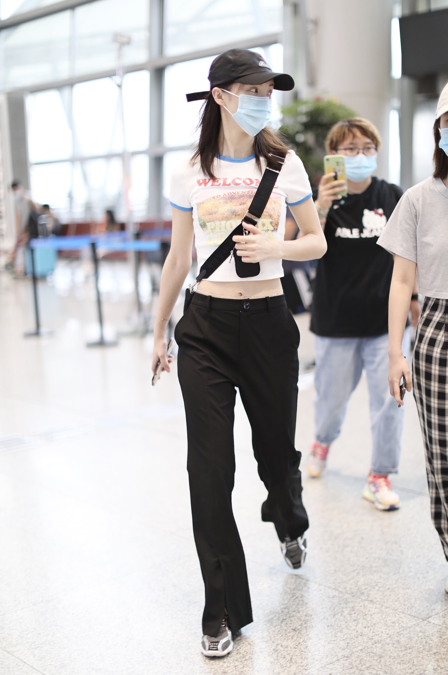 乘風破浪的姐姐!金晨大清早搭機戴腰鏈秀纖腰 一路笑臉盈盈心情好