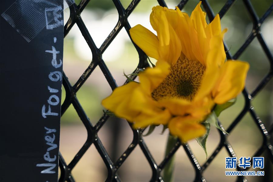 6月8日,美國華盛頓白宮附近的隔離圍欄上貼著“永不忘卻”的抗議標(biāo)語。新華社記者劉杰攝