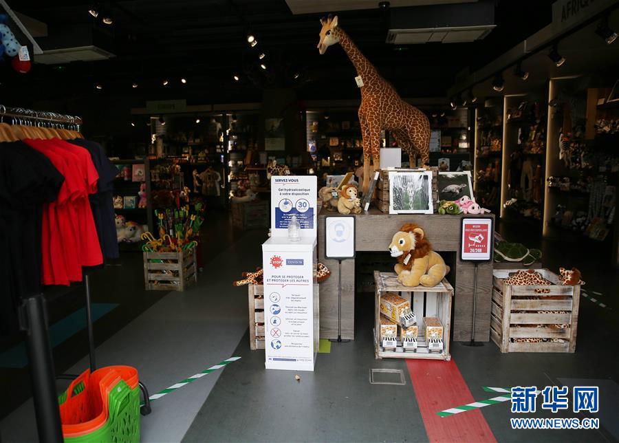 6月9日,法國(guó)巴黎動(dòng)物園的紀(jì)念品商店入口處為游客提供消毒免洗洗手液,并在地上標(biāo)注了參觀方向。受新冠疫情影響關(guān)閉了近3個(gè)月的巴黎動(dòng)物園于8日重新開放。新華社記者高靜攝