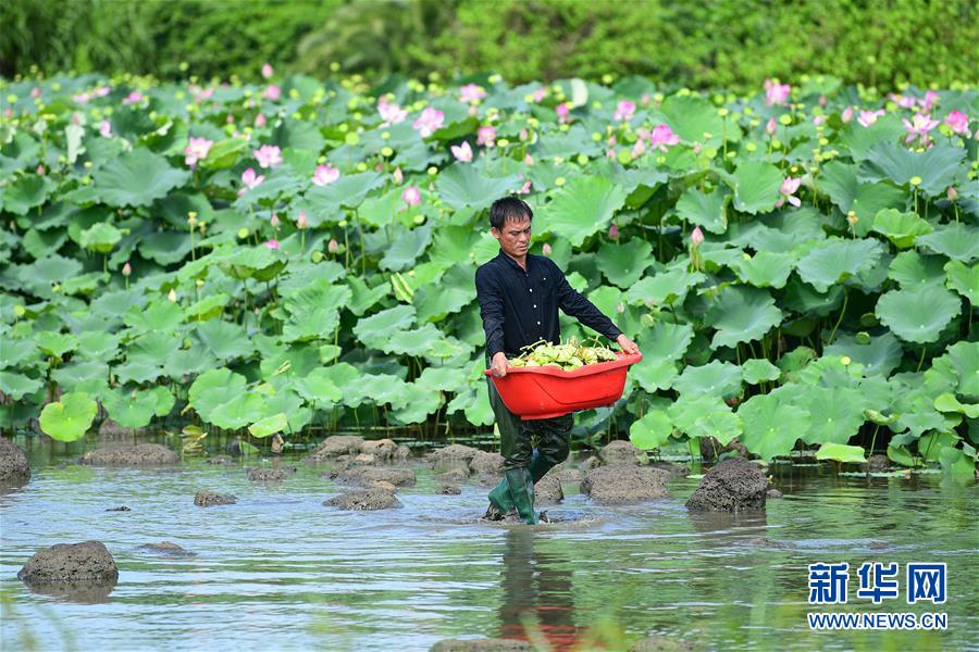 6月9日,村民在??邶埲A區(qū)龍泉鎮(zhèn)美仁坡村采摘蓮蓬。初夏時節(jié),位于海南??邶埲A區(qū)龍泉鎮(zhèn)的蓮蓬逐漸成熟,當?shù)卮迕窦泳o采摘,一派繁忙景象。新華社記者蒲曉旭攝