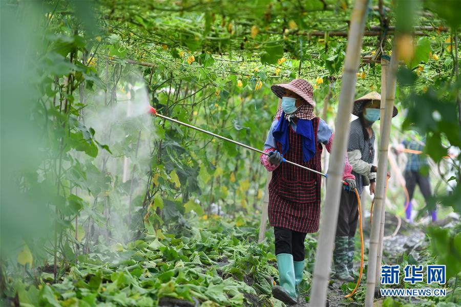 6月9日,在江華瑤族自治縣濤圩鎮(zhèn)鳳尾村蔬菜基地,農(nóng)戶對農(nóng)作物進行噴灑消毒。近日,受連續(xù)強降雨影響,湖南省永州市江華瑤族自治縣遭遇洪澇災害,部分農(nóng)田受災。目前,江華瑤族自治縣洪水已退,群眾在當?shù)叵嚓P(guān)部門引導下積極開展生產(chǎn)自救。新華社記者陳澤國攝