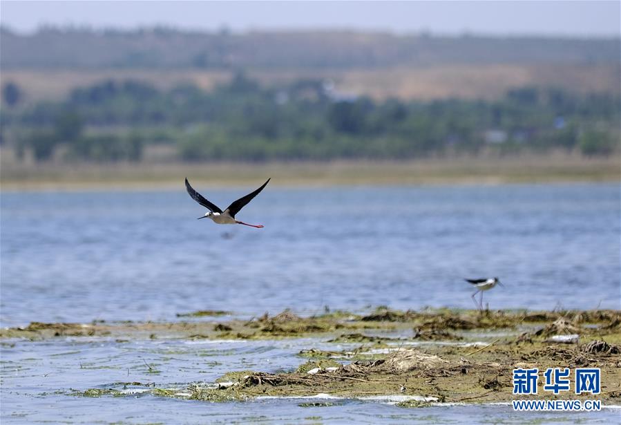 這是6月9日在泊江海子拍攝的黑翅長(zhǎng)腳鷸。近年來,在當(dāng)?shù)卣亩喾N措施治理下,曾經(jīng)水面萎縮的內(nèi)蒙古自治區(qū)鄂爾多斯市境內(nèi)的泊江海子水量逐漸恢復(fù)。近期,包括遺鷗在內(nèi)的40多種鳥類來此棲息,泊江海子重新成為鳥類的樂園。新華社記者賈立君攝
