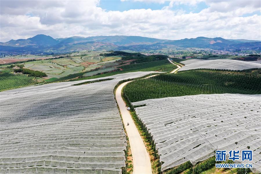 這是6月11日拍攝的貴州省威寧縣一處蘋果基地(無人機(jī)照片)。近日,貴州省威寧彝族回族苗族自治縣的農(nóng)民搶抓農(nóng)時(shí),對(duì)蘋果園進(jìn)行疏果、除草等田間管理,呈現(xiàn)出一派夏管農(nóng)忙景象。威寧縣蘋果種植面積50余萬畝,蘋果產(chǎn)業(yè)已逐步成為當(dāng)?shù)剞r(nóng)民增收致富的主導(dǎo)產(chǎn)業(yè)之一。新華社記者楊文斌攝。