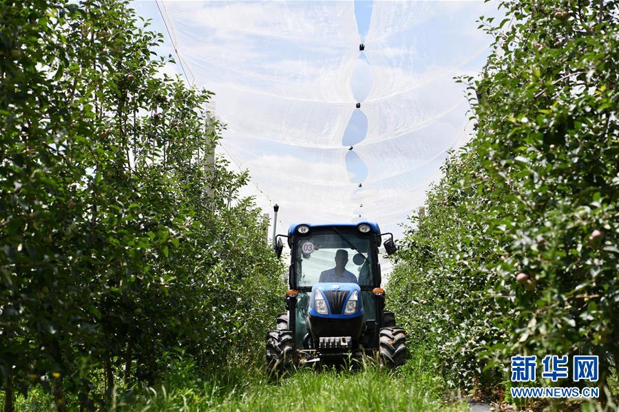 6月11日,農民在貴州省威寧縣一處蘋果基地里駕駛農機管護果園。近日,貴州省威寧彝族回族苗族自治縣的農民搶抓農時,對蘋果園進行疏果、除草等田間管理,呈現出一派夏管農忙景象。威寧縣蘋果種植面積50余萬畝,蘋果產業(yè)已逐步成為當地農民增收致富的主導產業(yè)之一。新華社記者楊文斌攝。
