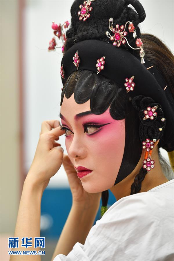 6月12日,廣東粵劇院演員在演出前化妝。當(dāng)日,廣東粵劇院聯(lián)合酷狗網(wǎng)絡(luò)直播平臺推出“周末睇大戲(線上版)”,將線下劇場轉(zhuǎn)移到線上,在酷狗直播間里呈現(xiàn)粵劇的經(jīng)典劇目,為劇迷們打造一場“云端”盛宴。新華社記者 劉大偉 攝