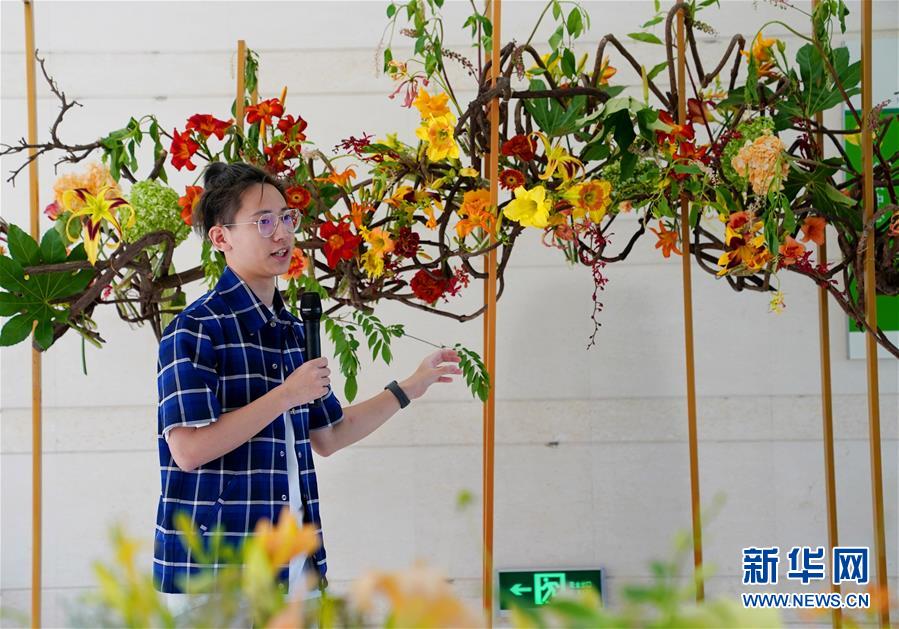 6月13日,第45屆世界技能大賽花藝項(xiàng)目冠軍、上海應(yīng)用技術(shù)大學(xué)學(xué)生陸亦煒在介紹自己主持設(shè)計(jì)和創(chuàng)作的花藝作品。當(dāng)日,“2020中國(guó)(上海)萱草文化節(jié)”在上海應(yīng)用技術(shù)大學(xué)開(kāi)幕,校園里數(shù)百個(gè)品種的萱草花競(jìng)相綻放,萱草科研推廣、萱草文化交流等多項(xiàng)活動(dòng)同時(shí)舉行。新華社記者 劉穎 攝
