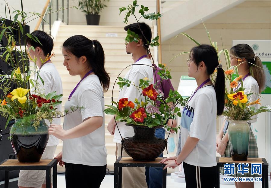 6月13日,上海應(yīng)用技術(shù)大學(xué)的學(xué)生們設(shè)計(jì)創(chuàng)作的萱草花藝作品即將在開幕式現(xiàn)場亮相。當(dāng)日,“2020中國(上海)萱草文化節(jié)”在上海應(yīng)用技術(shù)大學(xué)開幕,校園里數(shù)百個(gè)品種的萱草花競相綻放,萱草科研推廣、萱草文化交流等多項(xiàng)活動同時(shí)舉行。新華社記者 劉穎 攝