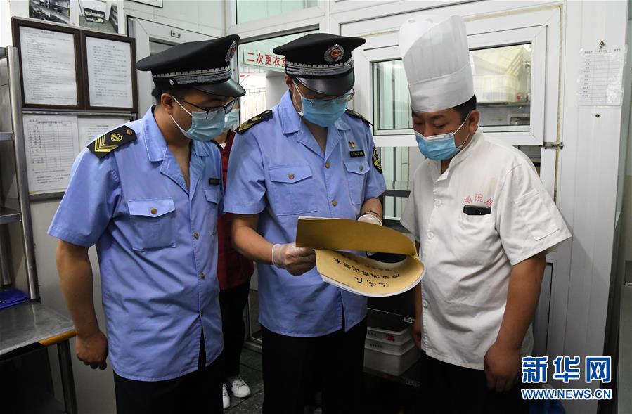 當日,北京市市場監(jiān)督管理局和海淀區(qū)市場監(jiān)督管理局的執(zhí)法人員來到位于海淀區(qū)的增光鴻運市場和海碗居增光路店,對市場內(nèi)蔬菜鮮肉等農(nóng)產(chǎn)品的進貨渠道、餐飲店的消毒情況進行檢查,保障市民生活安全。
