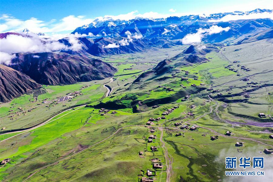 俯瞰丁青縣色扎鄉(xiāng)卡通村(6月14日攝,無(wú)人機(jī)照片)。