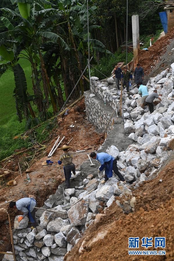 6月17日,工人在百坭村建設擋土墻。新華社記者 陸波岸 攝