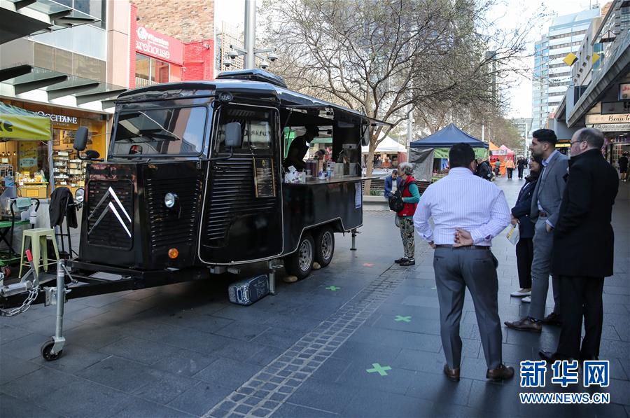 6月19日,人們在澳大利亞悉尼查茨伍德鎮(zhèn)的咖啡餐車前等候。新華社記者白雪飛攝