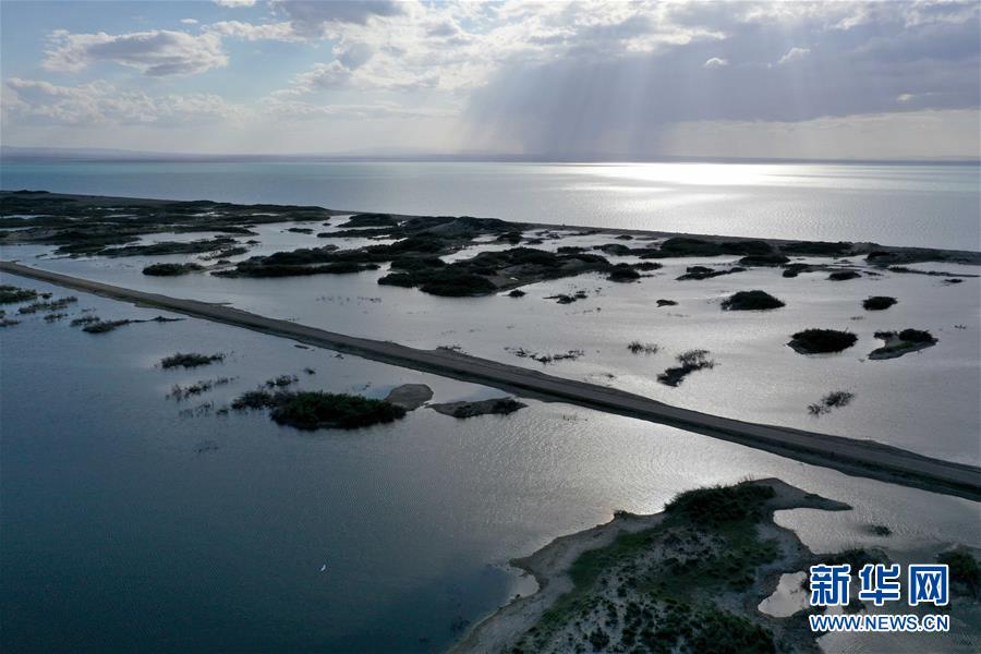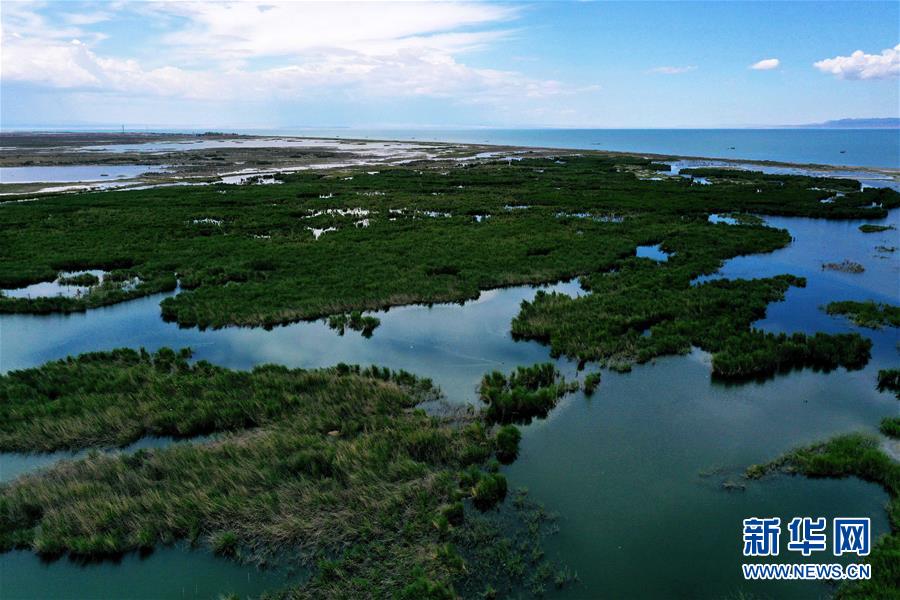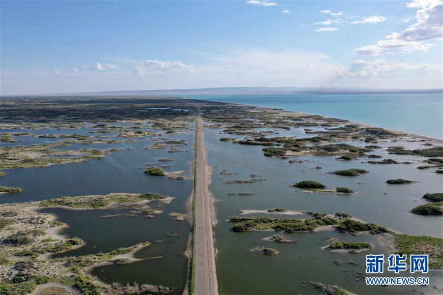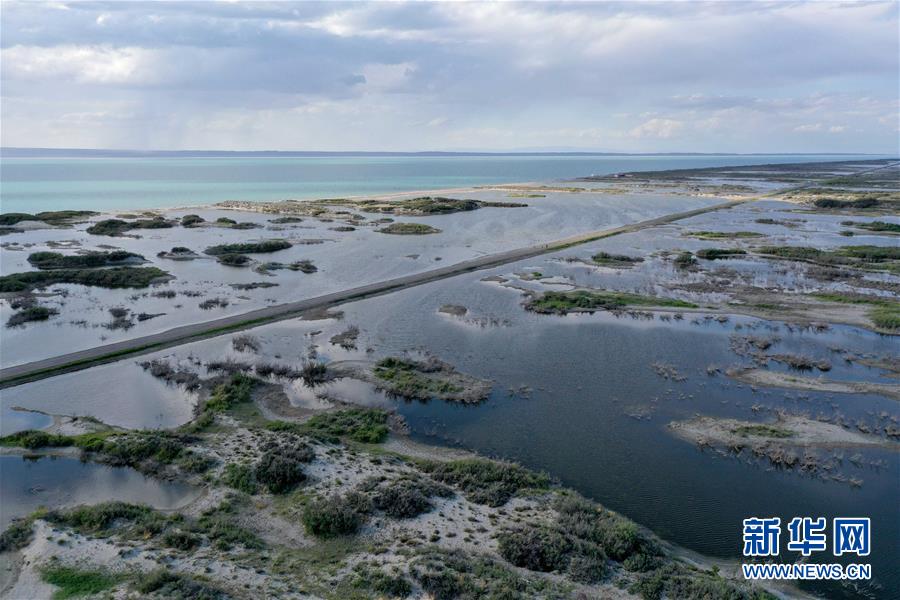 6月18日拍攝的新疆烏倫古湖國家濕地公園(無人機照片)。烏倫古湖國家濕地公園位于新疆阿勒泰地區(qū)福海縣城以西,由烏倫古湖和吉力湖兩部分組成。烏倫古湖濕地公園是遷徙候鳥飛越天山和阿爾泰山的“能量補充站”,良好的濕地生態(tài)吸引著大量遷徙鳥類在此集結(jié)成群,繁殖棲息,成為一道靚麗的風景線。新華社記者 沙達提 攝