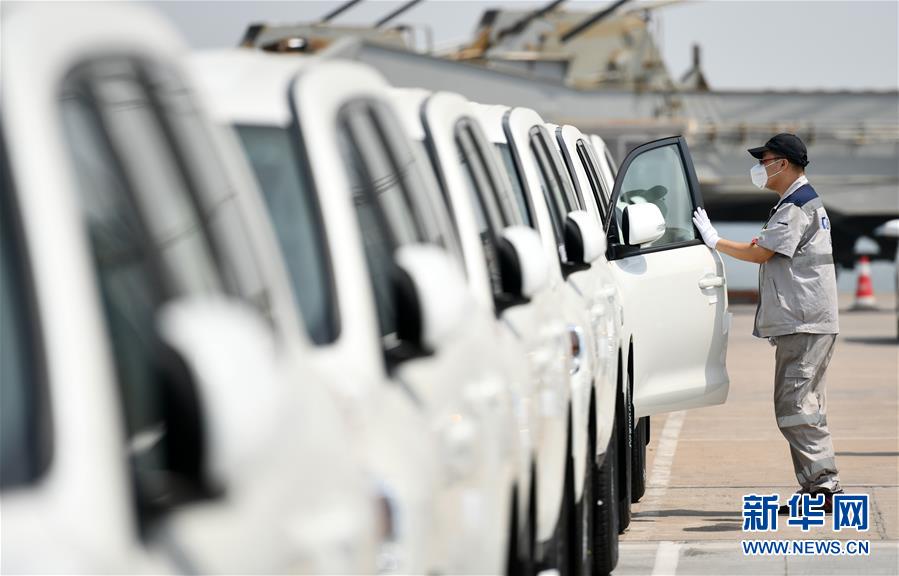 6月21日在天津港環(huán)球滾裝碼頭拍攝的車輛。當日,裝載著數(shù)千輛平行進口汽車的滾裝船順利??刻旖蚋郗h(huán)球滾裝碼頭,共接卸2600余輛豐田、日產(chǎn)等品牌的平行進口汽車。今年前5個月,天津港集團完成貨物吞吐量1.68億噸,集裝箱吞吐量689.5萬標準箱,分別同比增長1%和1.6%。新華社記者李然攝