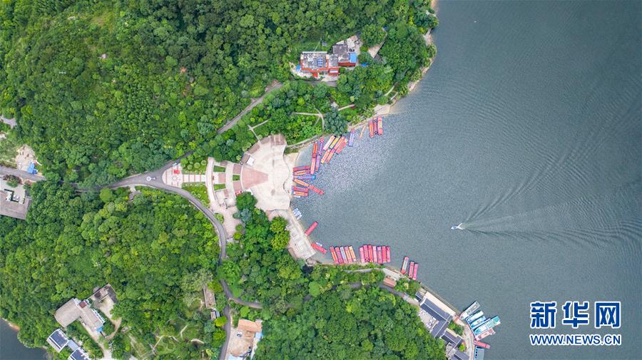 6月21日拍攝的紅楓湖景區(qū)風(fēng)光(無(wú)人機(jī)照片)。夏至?xí)r節(jié),貴州省清鎮(zhèn)市紅楓湖景區(qū)草木蒼翠,秀麗的湖光山色吸引不少游客前來(lái)游玩。新華社記者陶亮攝