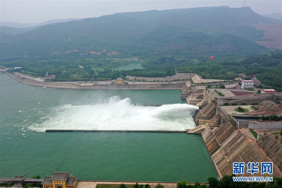 這是6月23日拍攝的黃河小浪底水利樞紐工程(無(wú)人機(jī)照片)。近日,黃河小浪底水利樞紐工程開(kāi)啟洪水調(diào)度運(yùn)用模式,從空中俯瞰,蔚為壯觀。新華社記者馮大鵬攝