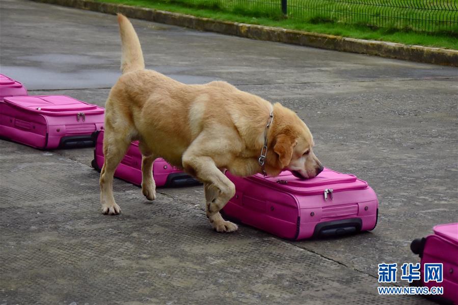 6月24日,緝毒犬“多多”練習(xí)辨認(rèn)毒品的位置。新華社記者 鄭夢(mèng)雨 攝