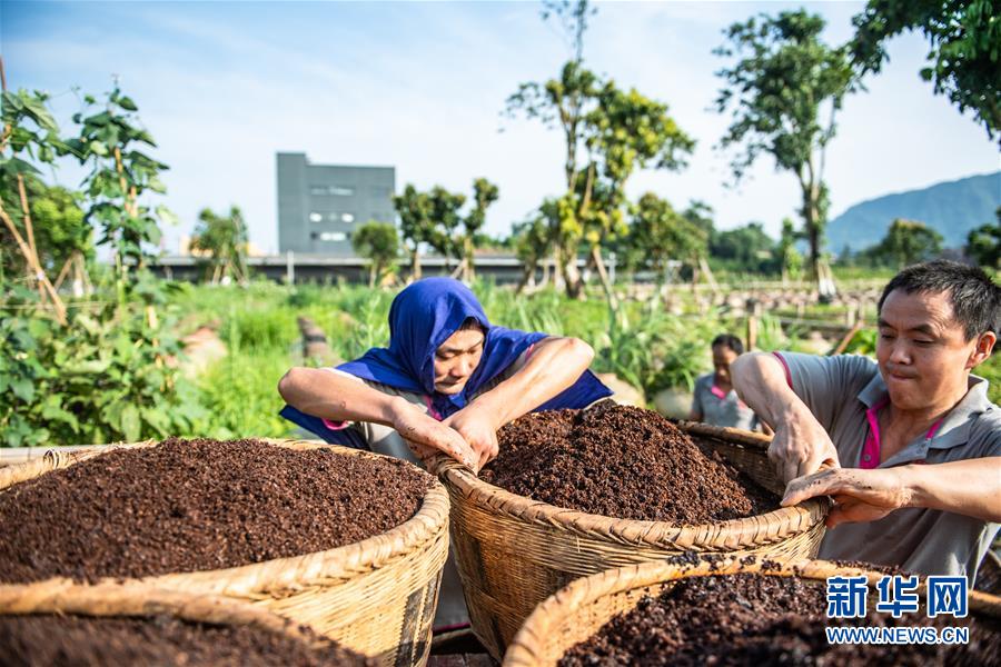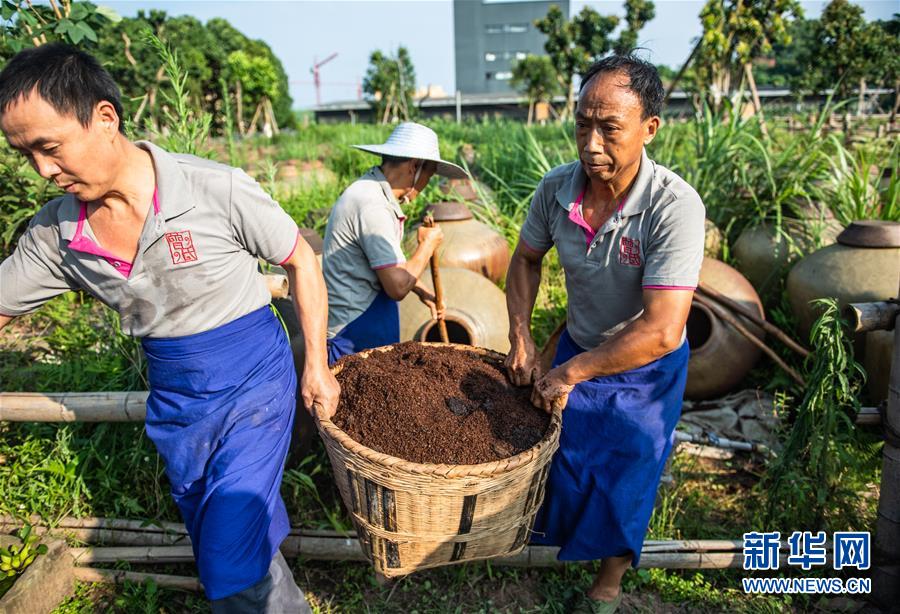6月26日,工人在曾氏曬醋廠(chǎng)搬運(yùn)醋醅。新華社記者 陶亮 攝