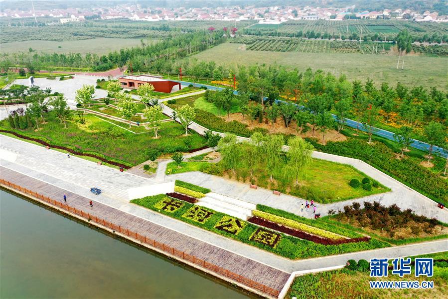 這是6月27日拍攝的遷西縣長河帶狀公園景觀(無人機照片)。新華社記者牟宇攝