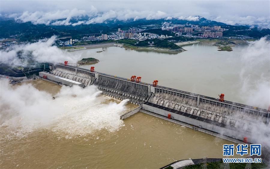 6月29日,三峽樞紐開啟泄洪孔泄洪(無人機照片)。受長江中上游強降雨影響,進入三峽水庫的水量持續(xù)增多。為騰出一定庫容迎接近期可能到來的洪水,三峽樞紐于6月29日上午開啟兩個泄洪孔,加大下泄流量。這是三峽樞紐今年首次泄洪。28日14時,三峽水庫入庫流量達4萬立方米/秒,是27日14時的兩倍。為應對此輪來水,長江防總要求將三峽水庫下泄流量上調至日均3.5萬立方米/秒。新華社發(fā)(鄭家裕攝)