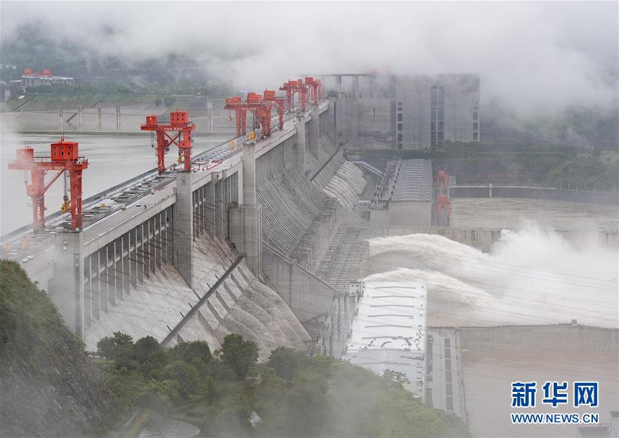 6月29日,三峽樞紐開啟泄洪孔泄洪。受長(zhǎng)江中上游強(qiáng)降雨影響,進(jìn)入三峽水庫(kù)的水量持續(xù)增多。為騰出一定庫(kù)容迎接近期可能到來的洪水,三峽樞紐于6月29日上午開啟兩個(gè)泄洪孔,加大下泄流量。這是三峽樞紐今年首次泄洪。28日14時(shí),三峽水庫(kù)入庫(kù)流量達(dá)4萬立方米/秒,是27日14時(shí)的兩倍。為應(yīng)對(duì)此輪來水,長(zhǎng)江防總要求將三峽水庫(kù)下泄流量上調(diào)至日均3.5萬立方米/秒。新華社發(fā)(鄭家裕攝)