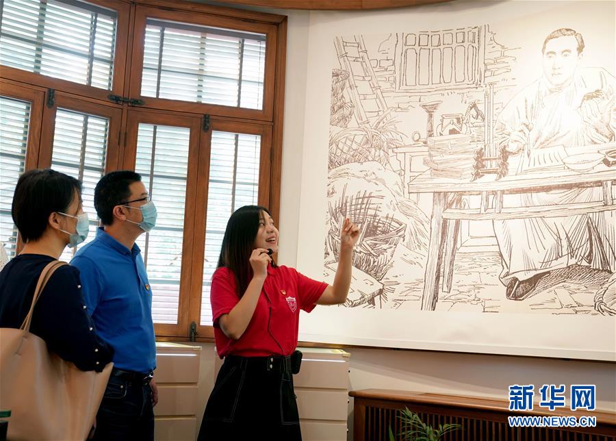 6月30日,復(fù)旦大學(xué)《共產(chǎn)黨宣言》展示館黨員志愿服務(wù)隊(duì)隊(duì)員、復(fù)旦大學(xué)馬克思主義學(xué)院博士生陸婷婷(右一)在為觀眾講解。陳望道是《共產(chǎn)黨宣言》首個中文全譯本的翻譯者,也是新中國成立后復(fù)旦大學(xué)的第一任校長。2018年5月,復(fù)旦大學(xué)將陳望道故居改造為《共產(chǎn)黨宣言》展示館,該校一批青年教師和學(xué)生組建黨員志愿服務(wù)隊(duì),面向廣大師生和社會各界開展宣講活動。復(fù)旦大學(xué)《共產(chǎn)黨宣言》展示館黨員志愿服務(wù)隊(duì)名為“星火”,由該校青年教師、博士生、碩士生黨員組成。兩年多時間里,志愿服務(wù)隊(duì)共服務(wù)學(xué)校及社會各界參觀者近5萬人次,年均講解700多場。新華社記者劉穎攝